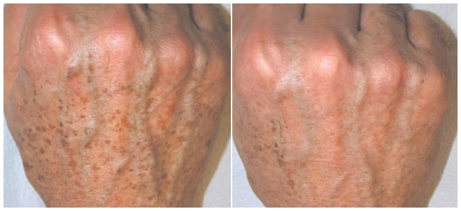 Efekty zabiegów rewitalizacji skóry grzbietów rąk oraz terapii depigmentacyjnej widoczne są przeważnie po serii 4-6 zabiegów wykonywanych co 2-4 tygodnie. Efekty działania kwasu hialuronowego, hydroksyapatytu wapnia i peelingów widoczne są praktycznie od razu.