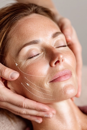 Podczas zabiegu pracujemy z napięciami w obrębie twarzy, szyi i karku, które często powodują pogłębione zmarszczki, obrzęki, ziemisty koloryt i uczucie „ciężkiej" twarzy.